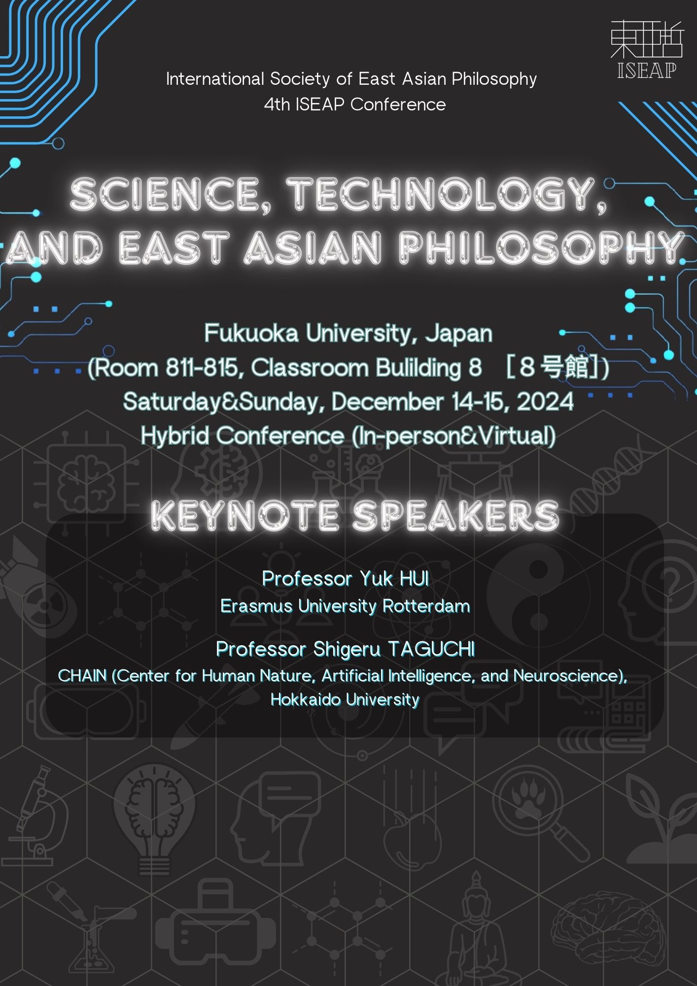 The 2024 ISEAP conference highlights the mutual relevance and interactions between science, technology and East Asian philosophy. It will focus on the philosophy of science and technology, broadly construed, which has been uniquely developed in the intellectual history of East Asia, and how it contributes to various philosophical issues raised by today’s rapidly advancing sciences and technologies.
